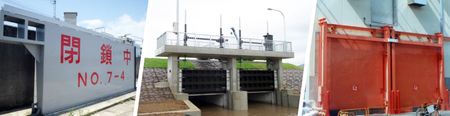 私たちは、社会インフラ整備事業を通じて、地域の人々の安全で安心な暮らしを実現することを使命としております。 高潮・洪水・農業灌漑対策用の水門工事、また除塵機等の水処理機械設備工事の設計・製作・現地据付をしております。 また、納入後の点検・整備や非常時(豪雨時、故障時)の緊急出動などにも対応しております。これからも、豊富な経験と確かな技術で、地域の安全を支えに貢献して参ります。